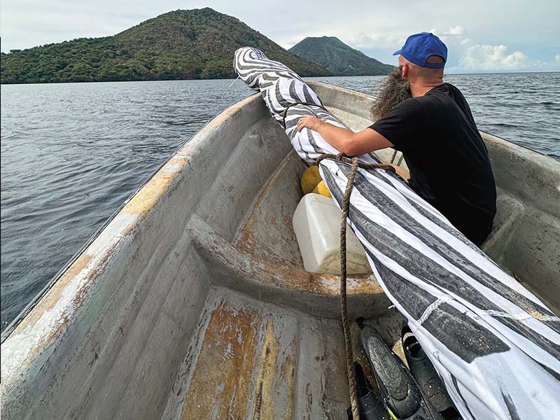 Der Künstler begibt sich immer wieder gerne in extreme Situationen, die ihm körperlich viel abverlangen. In ausgestellten Werken wie „Punishment“ (2011–2012) kämpft von Bismarck bis zur Erschöpfung und dennoch vergeblich gegen die tosende See. In „Talking to Thunder“ (2016–2017) reiste der Künstler auf der Suche nach Blitzen, um dieses Phänomen zu erforschen. Dafür entwickelte er ein eigenes Gerät, um Blitze einzufangen und auf den Boden zu leiten. Ob Feuer, Blitzeinschläge oder Sturmfluten – die Erforschung der Naturgewalten Feuer und Wasser in einem Lebensraum, der zunehmend vom Menschen verändert wird, bildet den roten Faden der Ausstellung.
