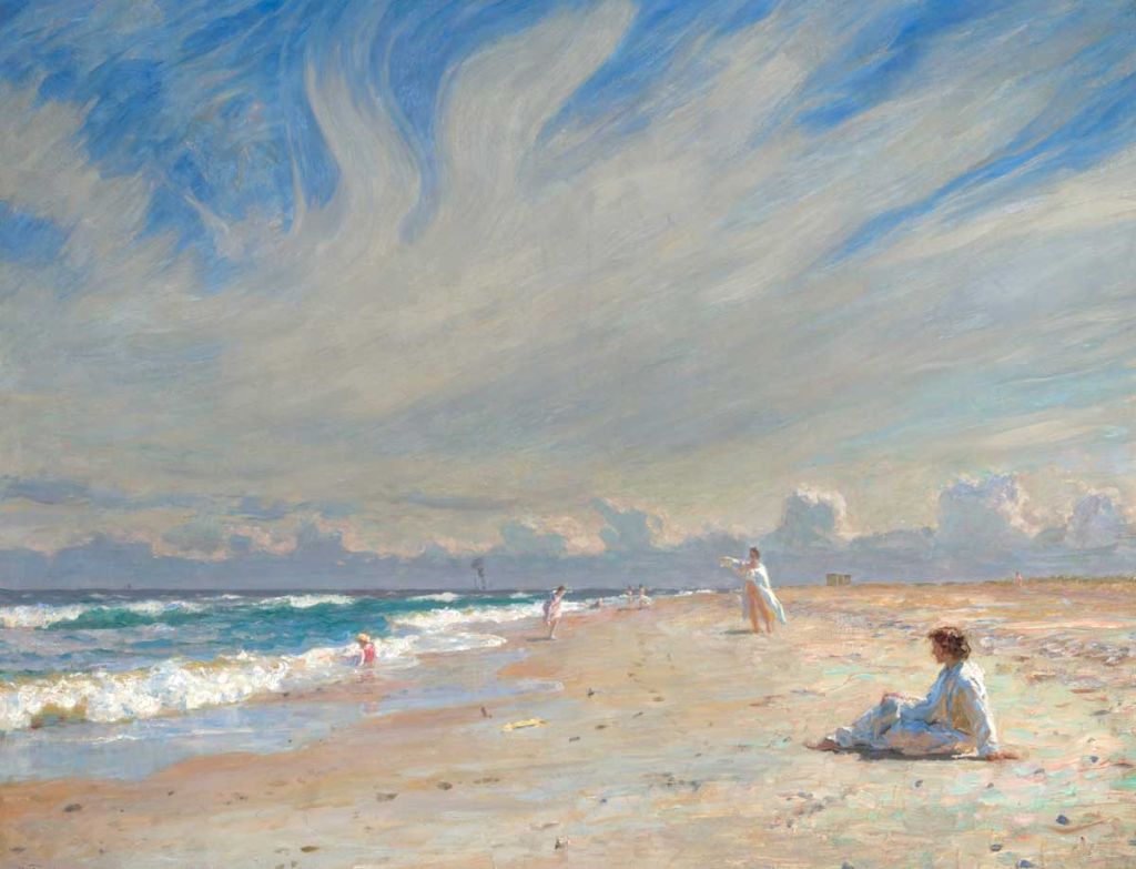 Zu erleben ist ganz großes Kino, das Naturereignis wird überwältigend vor Augen geführt und kommt dem Naturvorbild ganz nahe. Kunst und Naturschönes gehen hier eine wunderbare Allianz ein. Da sind Frühwerke Edvard Munchs zu sehen. Noch nicht von der bleiernen Schwere der symbolistischen Melancholie gezeichnet, die ihn später berühmt machen wird, eher naturalistische Skizzen. Zu sehen ist auch unbekanntes, nicht weniger überzeugendes Bildmaterial wie ein theatralischer Sonnenuntergang des finnischen Landschaftsmalers Victor Westerholm. Beim Rundgang empfängt den Betrachter samtiges Blau wie in Peder Severin Krøyers „Sommerabend am Skagen-Strand“. Weiß gekleidete Frauen am Ufer, das Meer spiegelt den Himmel, und beide scheinen in eine zeitlose Stille eingetaucht. Das Licht ist nicht einfach nur Abendstimmung – es ist dieses geheimnisvolle Zwischenlicht, in dem Farben sich lösen und die Konturen weich werden.