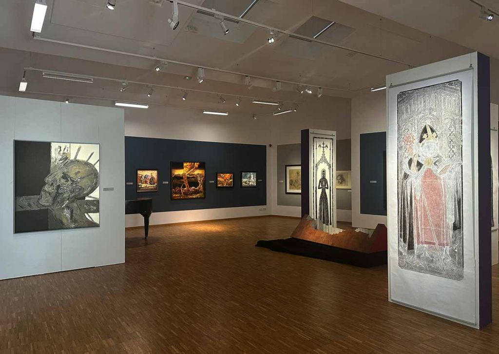 Es könnte sich um den rätselhaften Titel eines Science-Fiction-Films handeln: „Nähe aus Distanz“. Nun: ein Irrtum. Es handelt sich um den Ausstellungstitel der Frankfurter Künstlergesellschaft, die in der unweit von Fulda liegenden Kunststation Kleinsassen zu Gast ist. Am Fuß der Milseburg gelegen, ermöglicht diese Ausstellungen auf einer Fläche von 1.400 Quadratmetern. Ein Paradies für alle erfolgreichen Künstlergruppen, die sonst sehr oft dazu gezwungen sind, die eine oder andere Arbeit aus Platzmangel wegzulassen. Ein Paradies auch für die schon 1857 gegründete Frankfurter Künstlergesellschaft (FKG), die über 700 ordentliche (und fördernde) Mitglieder hat. Die Gesellschaft, eine der ältesten in Deutschland, hat nicht nur wichtige Maler und Grafiker in ihren Reihen gehabt, sondern auch Bildhauer und Architekten, die das Erscheinungsbild Frankfurts prägten, etwa den Frankfurter Hauptbahnhof, die Börse, den Römer, die Alte Oper und das Städel. Eine große Tradition, und als der Künstlergemeinschaft 1906 noch das „Steinerne Haus“ als Vereinshaus überlassen wurde, wurde die Stadt um einen Ort der Bildenden Kunst reicher, wo Kunstwerke, aber auch Bücher, Kostüme und anderes Platz fanden.